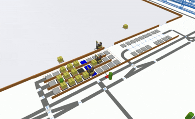 I created a fully data-driven model of the planned site, including all production lines, buffer areas, vehicle fleets and even flowbin fleets.