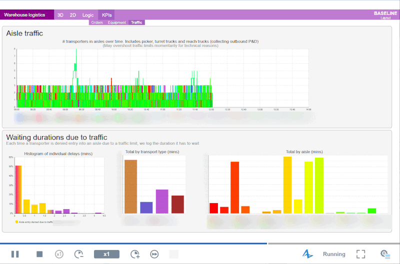 I developed a unique spatial setup that allows tugger traffic to be modelled ~100 times faster than traditional traffic models, without loosing critical fidelity.